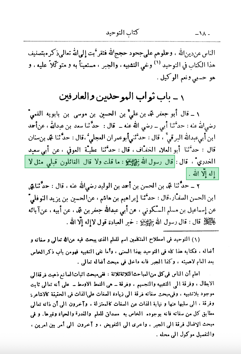 Ref: Kitab al-Tawhid by Shaykh al-Saduq, P18