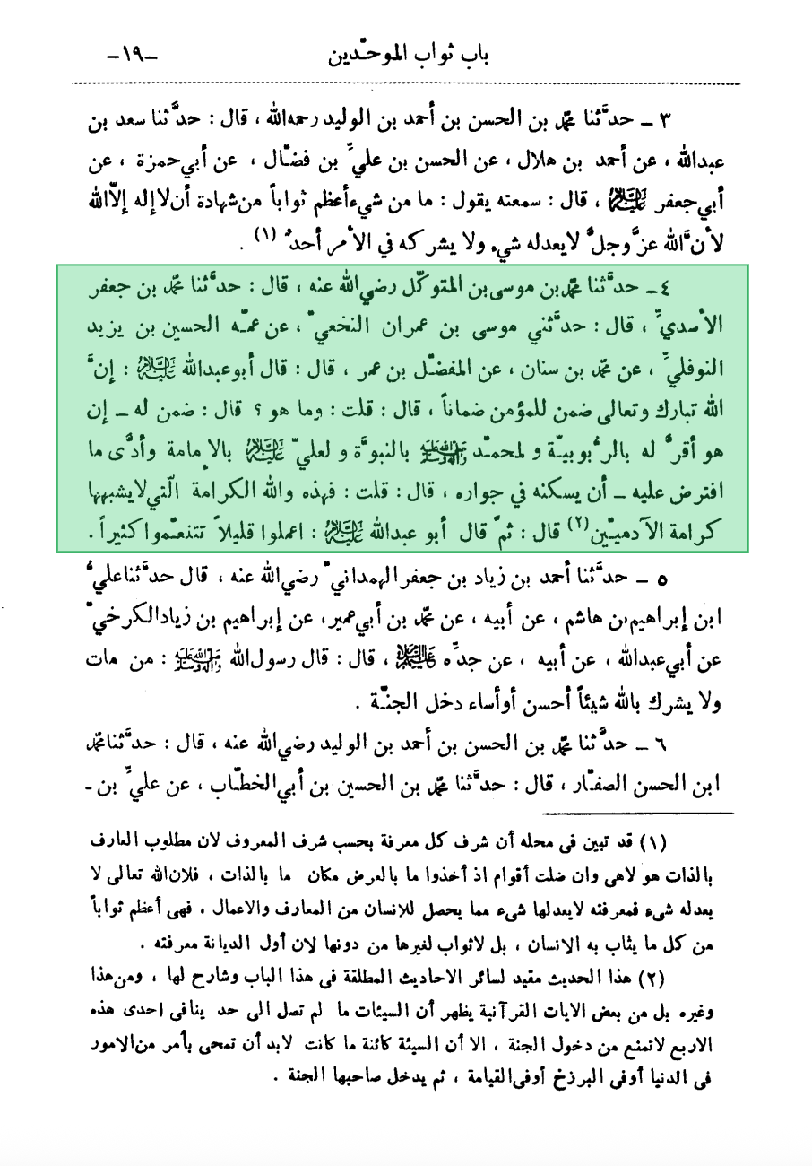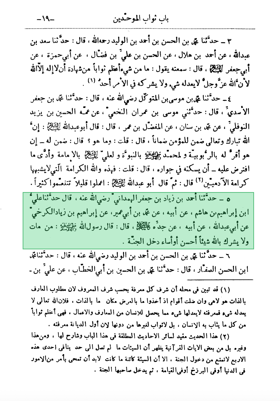 Ref: Kitab al-Tawhid by Shaykh al-Saduq, P19